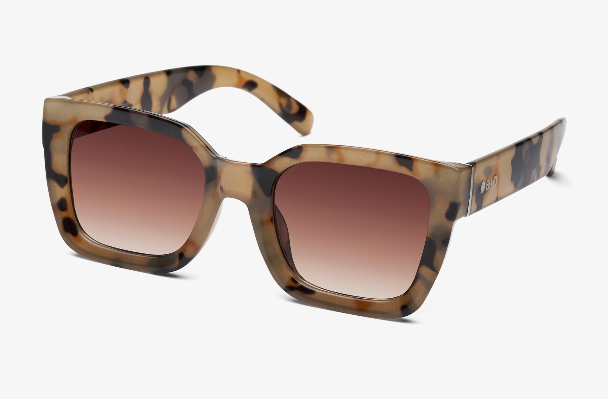 Anteojos de sol de forma cuadrada, generoso tamaño y un elegante brillo. Poseen lentes con protección UV 400.