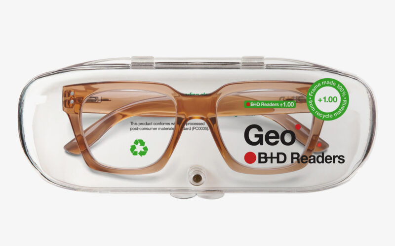 Anteojos de lectura de corte geométrico y marcos elaborados con materiales 100% reciclados, minimizando el impacto sobre el medio ambiente. Diseñados para adaptarse a todo tipo de rostros, combinan elegancia y sustentabilidad.